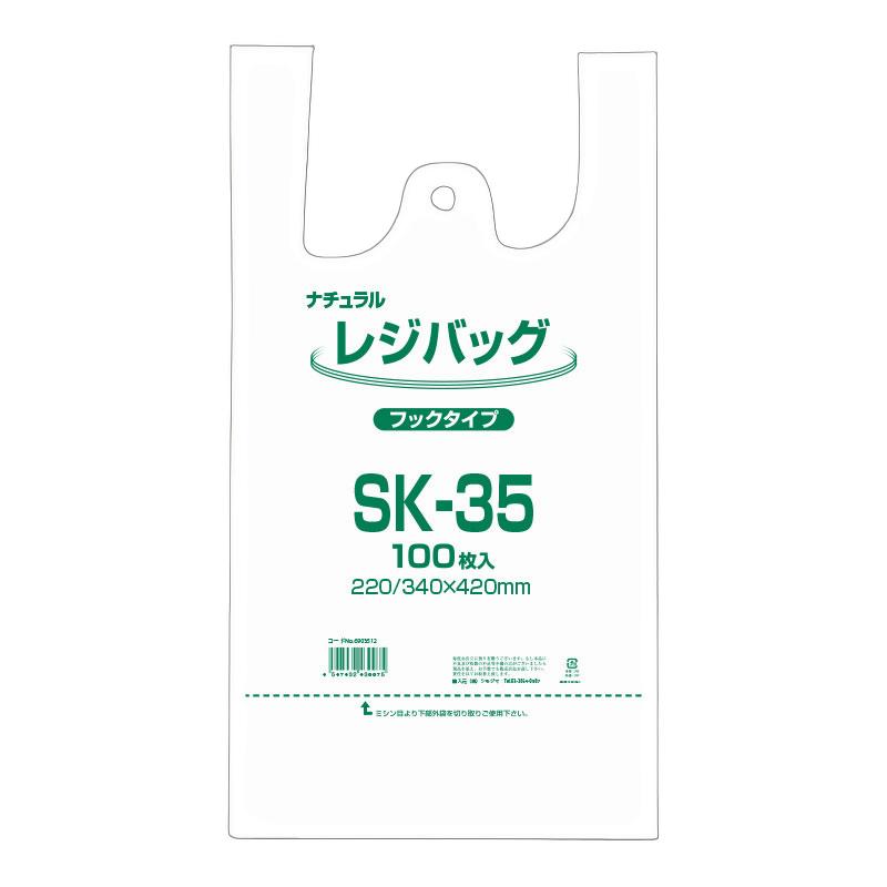 レジ袋 100枚 レジバッグ ビニール袋 SK-35 ナチュラル (半透明) ELP