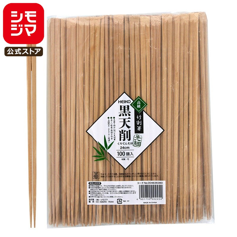 HEIKO 割り箸 竹 割箸 先細 黒天削 24cm 裸 バラ(個包装なし) 100膳