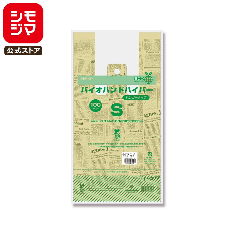 バイオマス レジ袋 100枚 バイオハンドハイパー ビニール袋 S ニュースレター シモジマ HEIKO