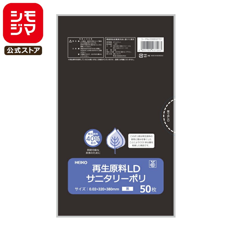HEIKO 再生原料 LD サニタリー ポリ 黒 50枚 シモジマコード:006602701 サニタリー袋 トイレ ゴミ袋