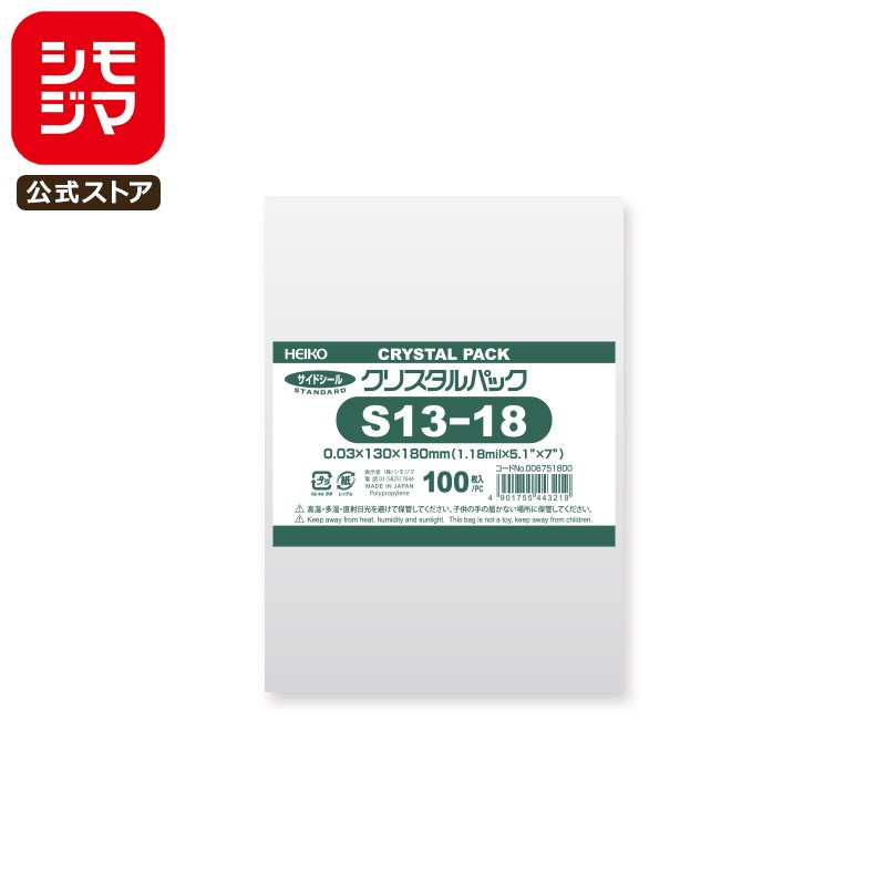 OPP袋 透明袋 写真2L判サイズ テープなし 100枚入 クリスタルパック 厚0.03×幅130×高180mm シモジマ HEIKO S 13-18