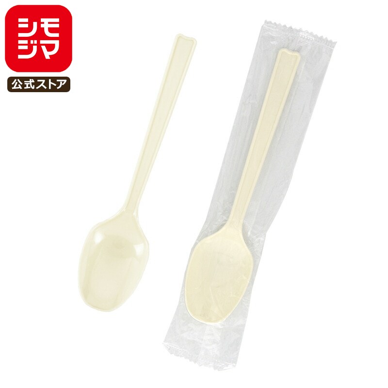 使い捨て カトラリー 個包装 100本入 プラスチックスプーン 16cm アイボリー シモジマ HEIKO
