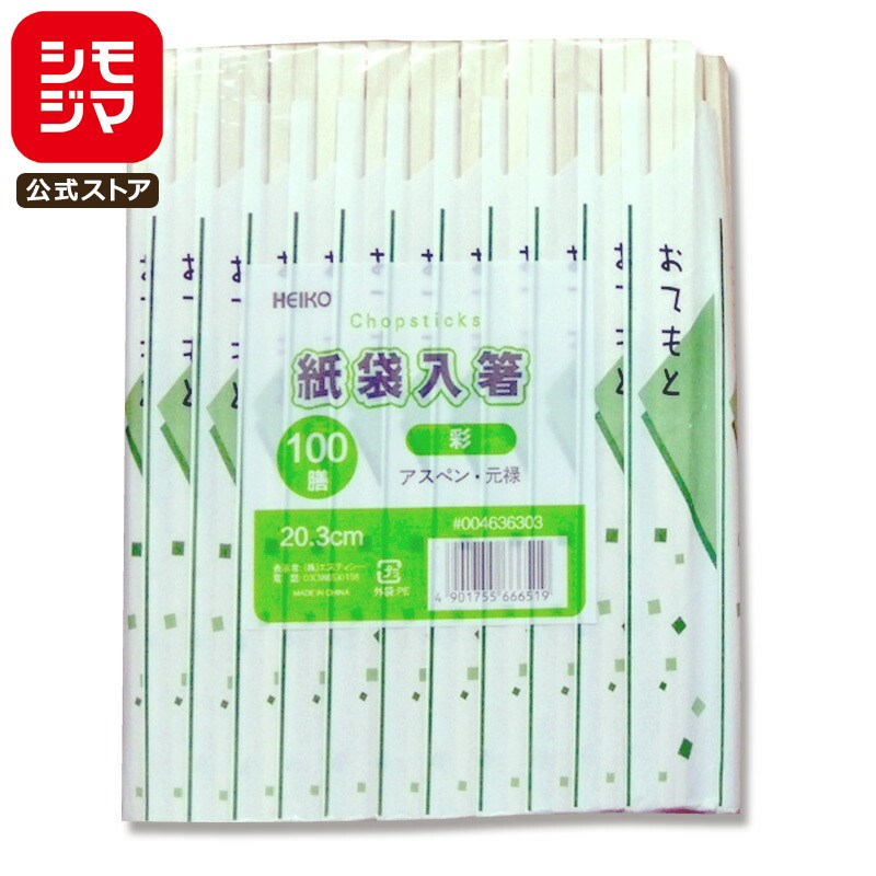 割り箸 100膳 箸袋入り アスペン元禄箸 20.3cm 彩 HEIKO