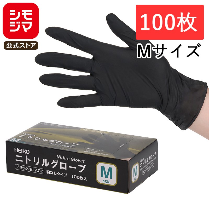HEIKO 使い捨て ニトリル手袋 ヘイコー ニトリルグローブ ブラック M 100枚 粉なし 調理 介護 ニトリルグローブ パウダーフリー シモジマコード004771356
