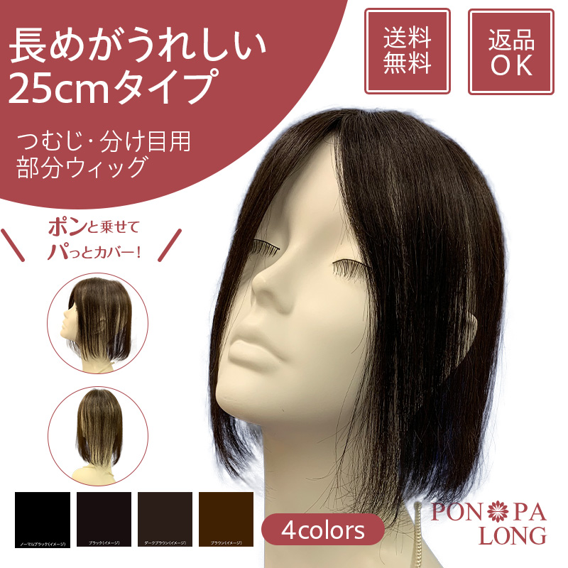 部分ウィッグ 頭頂部 自然 トップピース 人毛 女性 ミディアム ロング つむじ 分け目 総手植え ポンパロング PON-PA LONG