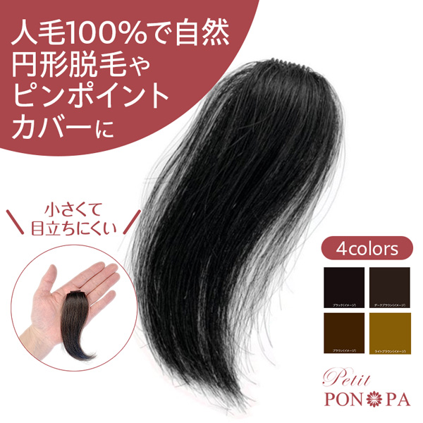 部分 ウィッグ 人毛 100% 自然 医療用 円形脱毛症 隠す ショート 男性 女性 ポイントウィッグ プチポンパ Petit PON-PA ブラック ブラウン