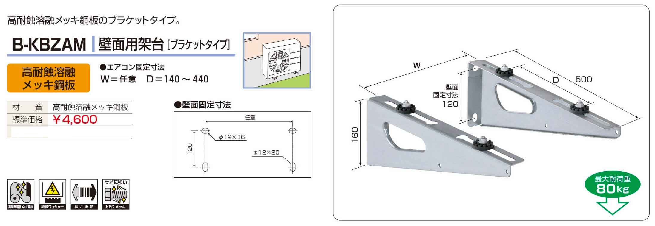 法人のみ バクマ工業 BEAR (/BG) 2台以上注文用 エアコン架台 高耐蝕 溶融メッキ鋼板 壁面用 ブラケットタイプ 室外ユニット 室外機 ルームエアコン B-KBZAM