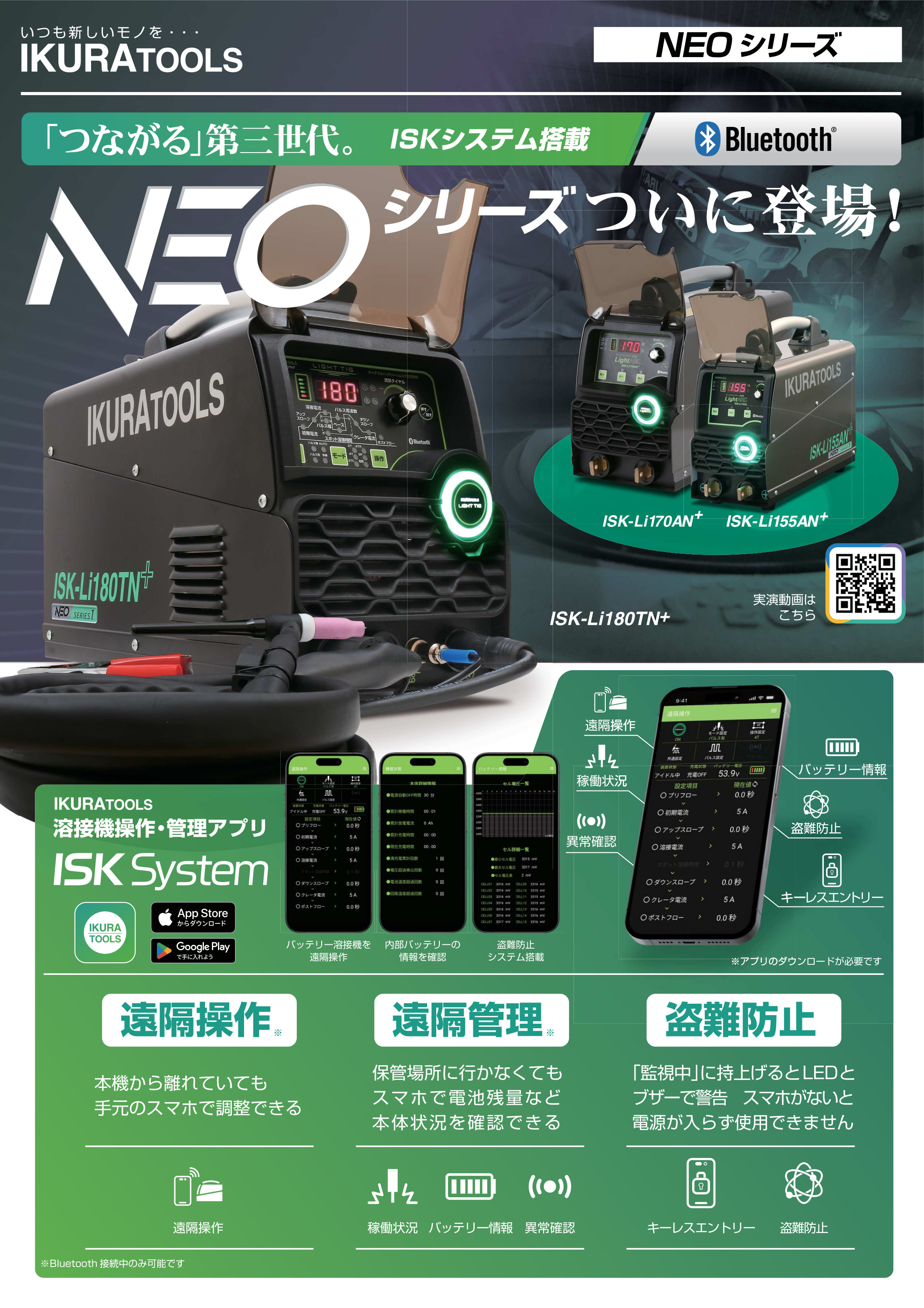 育良精機 (/AN) アーク溶接機 NEO 100V 業務用 18kg ライトアーク 遠隔操作 遠隔管理 盗難防止 IKURA ISK-LI170AN(PLUS) ISK-Li170AN+