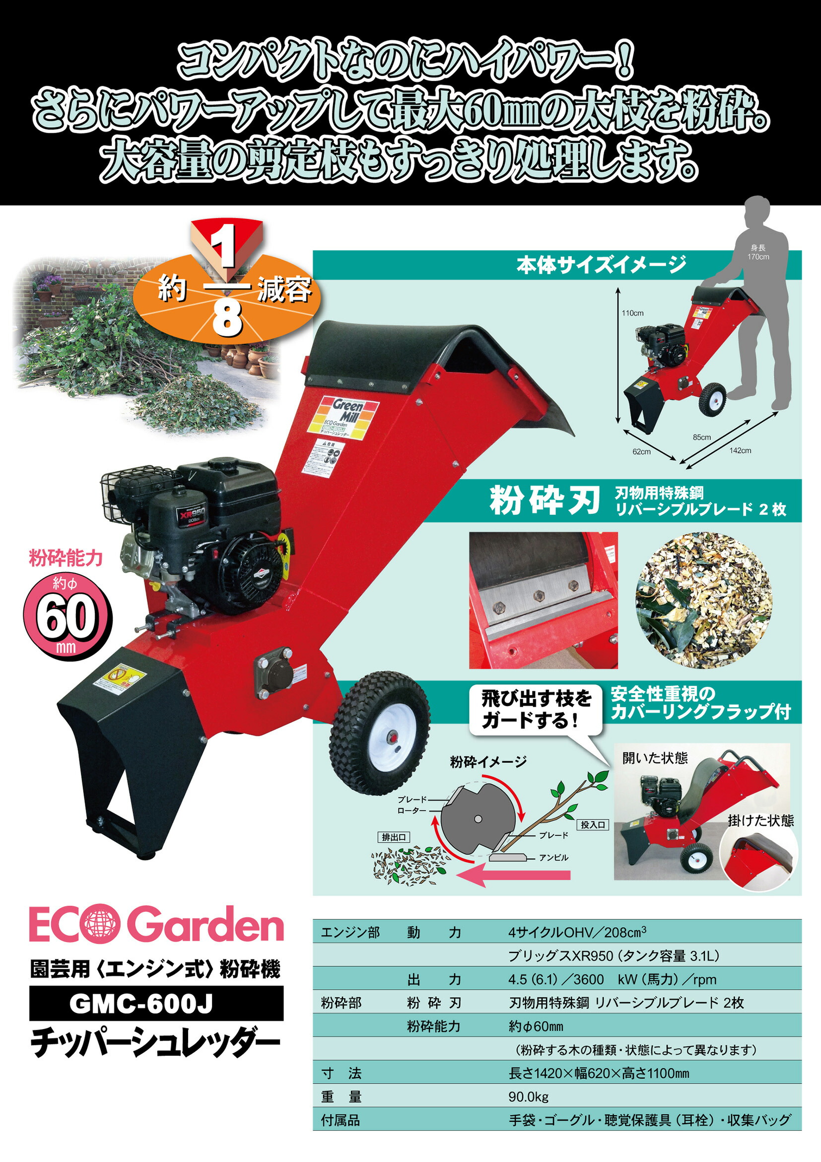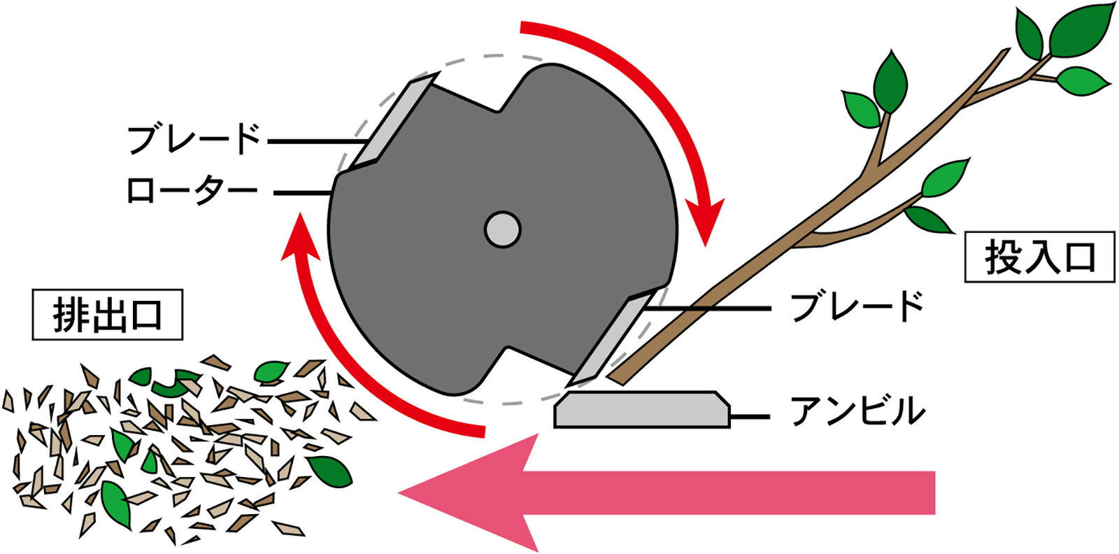 最大60mmの太枝を粉砕!