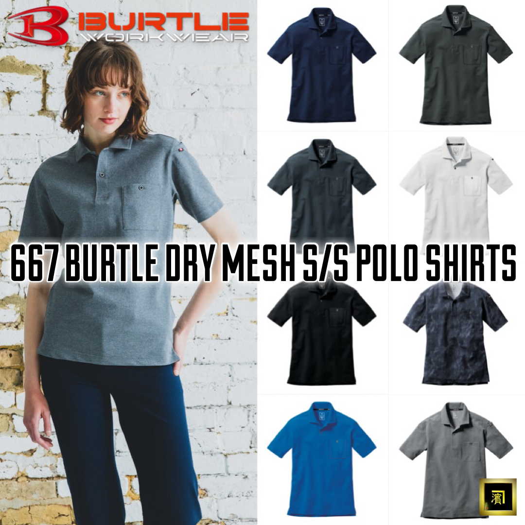 667 BURTLE バートル 半袖 ポロシャツ ドライメッシュ 鹿の子 吸汗速乾 UVカット 消臭テープ ナチュラルフィット 作業服 作業着 ワークウェア ユニフォーム