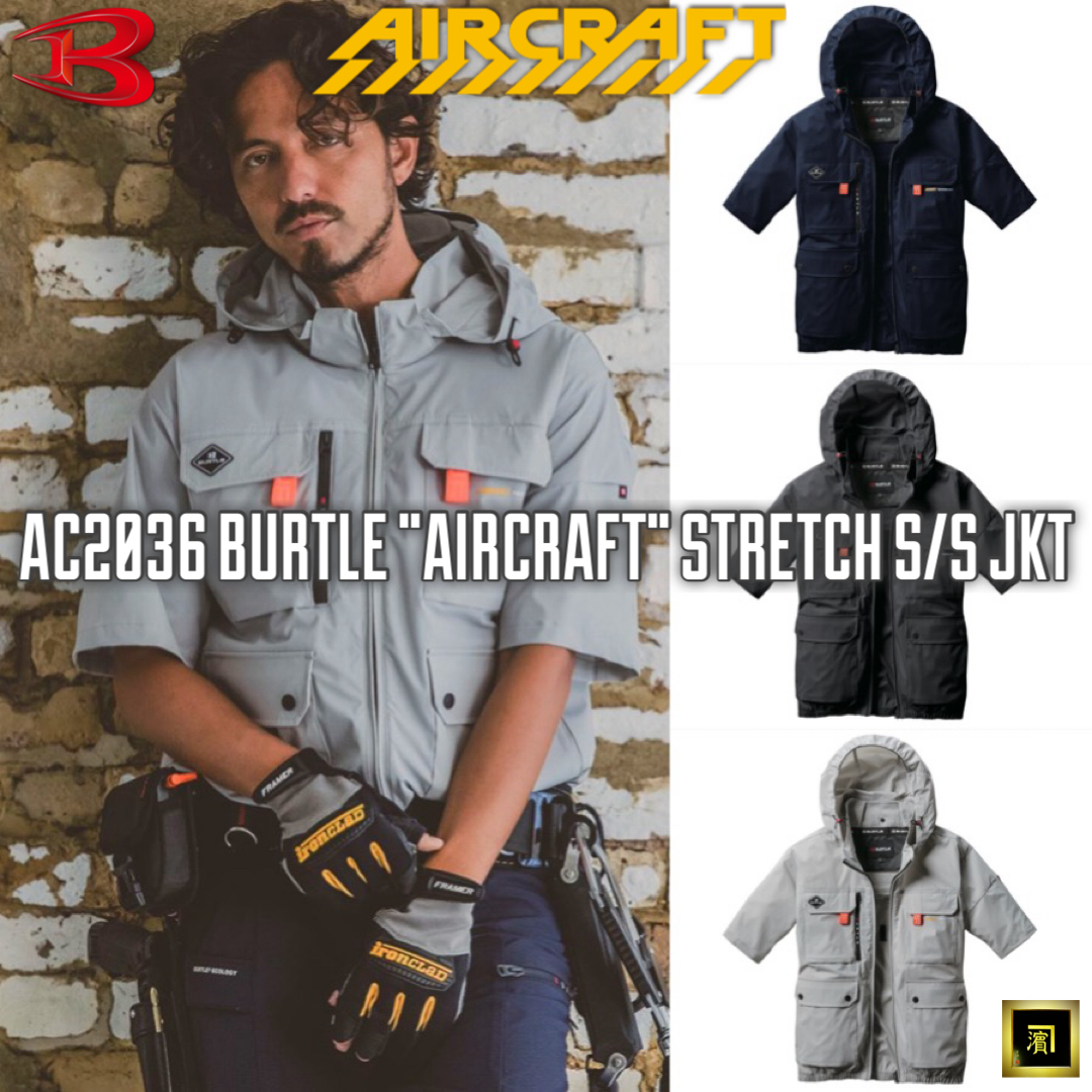 AC2036 BURTLE バートル AIRCRAFT エアークラフト 2025 春夏 新作 ハイバック 空調作業服【ファンなし・服のみ単品】半袖ブルゾン ストレッチ 熱中症対策