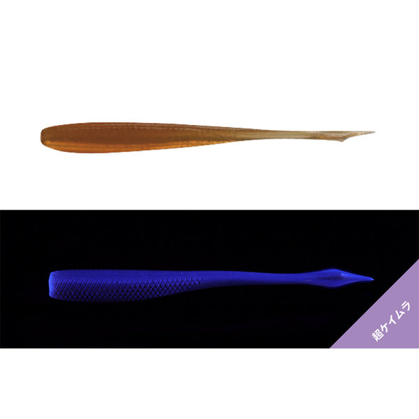 2g以上のやや大きめのジグヘッドと組み合わせる事で、誰にでも手軽にダートアクションを発生させる事が可能。また柔らかさを保ったままサイズアップされたボディは、テールを艶めかしく揺らしながら魚を誘惑します。