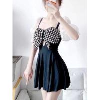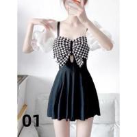 水着 レディース バンドゥ ビキニ キャミソール チェック柄スカート 体型カバー 中学生 高校生 女の子 オフショルダー ハイウエスト ママ水着