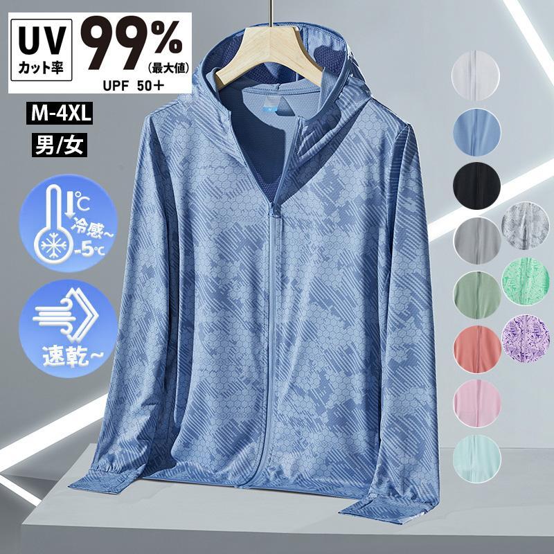 日焼け防止 パーカー UVパーカー メンズ UVカット 接触冷感 指穴 UPF50+ 薄手 速乾 レディース ラッシュガード 長袖 体型カバー 自転車