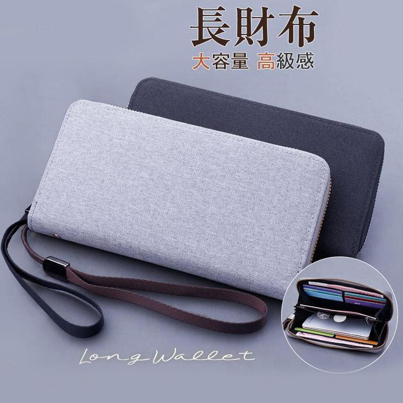 長財布 メンズ ロングウォレット 財布 ダブルファスナー 軽量 大容量 ストラップ付き シンプル 無地 お札入れ 携帯入れ ギフト 父の日