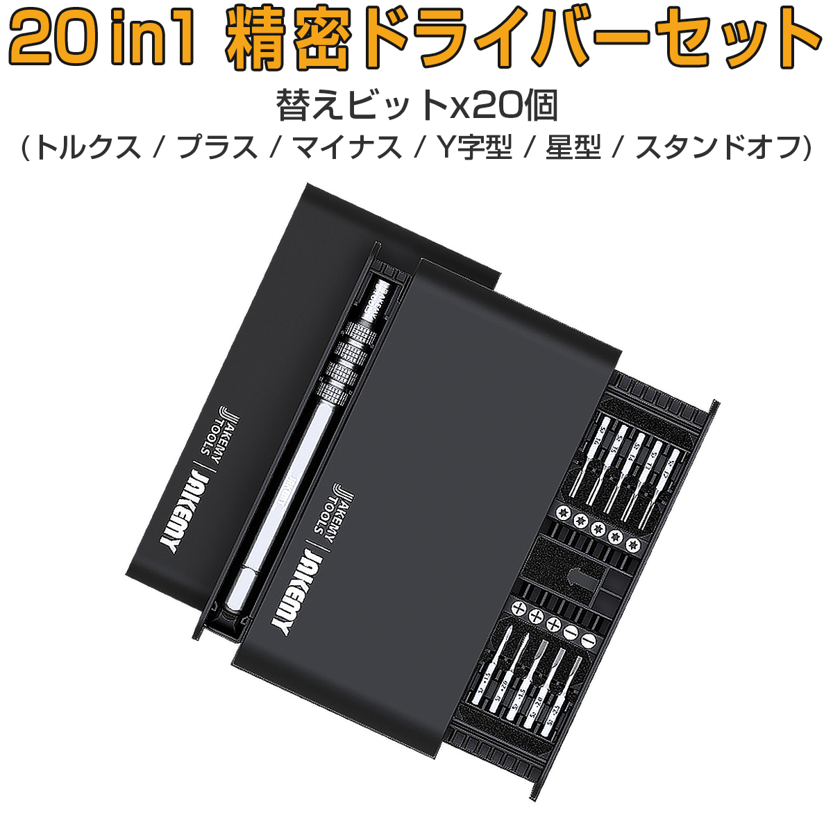 JAKEMY 20in1 精密ドライバーセット 特殊ドライバー 磁石付き ネジ回し 修理キット 多機能ツールキット スマホ タブレット PC 腕時計 デジタルカメラ 1ヶ月保証