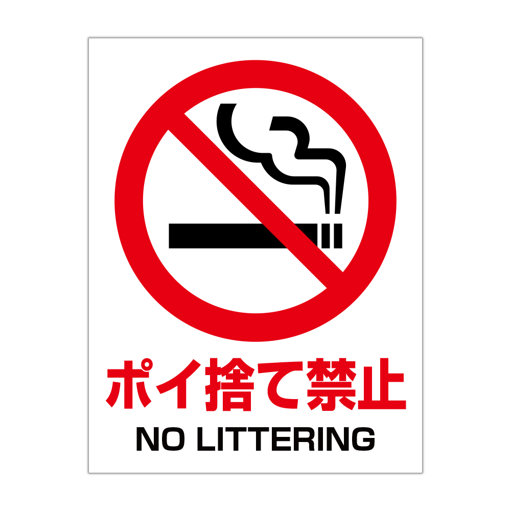 粗面に直接貼れる 強粘着ステッカー タバコ ポイ捨て禁止 NO LITTERING S:230X300mm