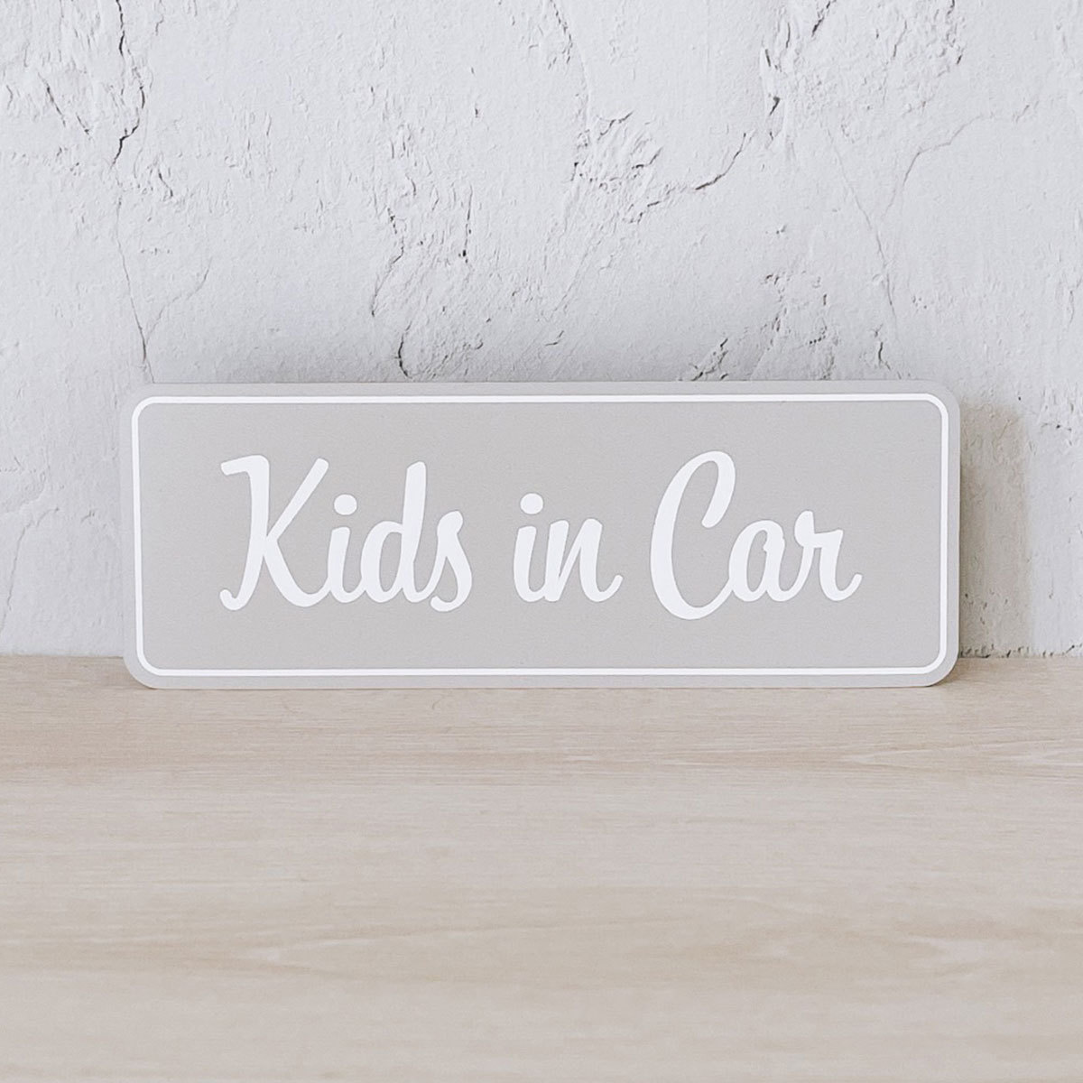 スタイリッシュな筆記体フォントでデザインされた「KIDS IN CAR」のマグネットです。