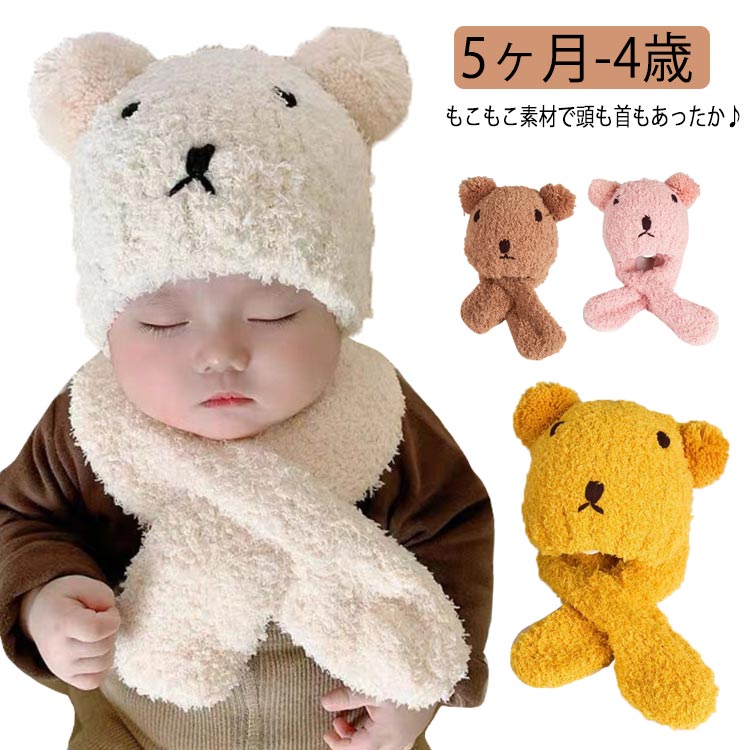 | もこもこ素材で頭も首もあったか♪ かわいいくまちゃんに包まれてるみたい! ふんわりやさしい肌ざわりで赤ちゃんにも優しい♪ 冬の防寒対策に。 ポンポンの耳がとってもカワイイ! マフラーは差し込み式で着脱しやすく外れにくいデザイン。 いっぱい走り回っても安心! | |