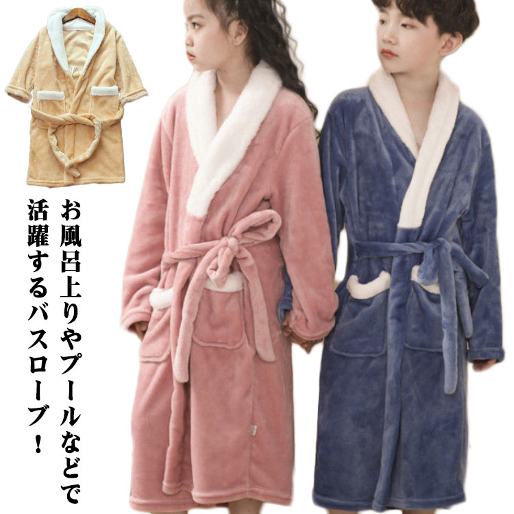| お風呂上りやプールなどで活躍するバスローブ! 濡れた髪もすっぽりかぶって拭けるのでヘアタオル代わりにも使える便利なフード付き。 お子さまの肌にも優しくて安心な素材です。 吸水性と保温性に優れ、お風呂上がりの湯冷めから守ってくれます。 | |