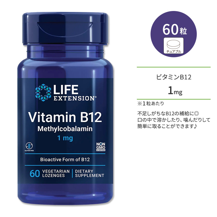 ●生物活性型ビタミンB12 (メチルコバラミン) を1000mcg含有♪すっきり健康的な毎日のために! ●水なしでOK♪便利なチュアブルタイプなのでそのまま口に含んで摂取できる♪ ●ビタミンB12は、乳製品や卵などに多く含まれているため、ベジタリアンの方や年齢を重ねた方、あまり動物性食品をとらない方に最適! ●忙しく働いている方やアクティブな毎日を送っている方にもオススメ◎ ※Non-GMO (非遺伝子組換え) / グルテンフリー / ベジタリアン仕様【LIFE EXTENSIONのこだわり】 GMP (適正製造基準) 認証 | ||