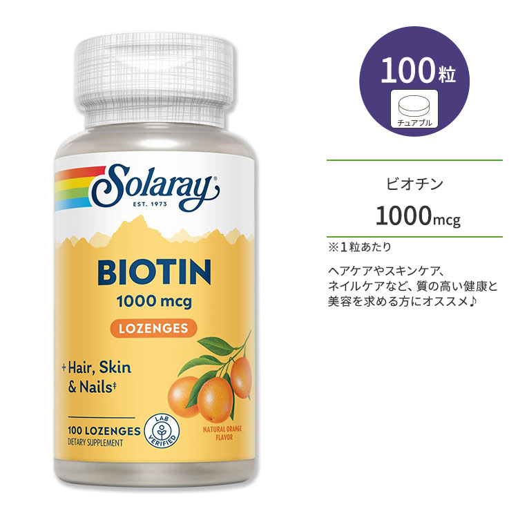 ソラレー ビオチン 1000mcg 100粒 トローチ ナチュラルオレンジ風味 Solaray Biotin Lozenge Natural Orange Flavor ビタミン ヘアケア スキンケア