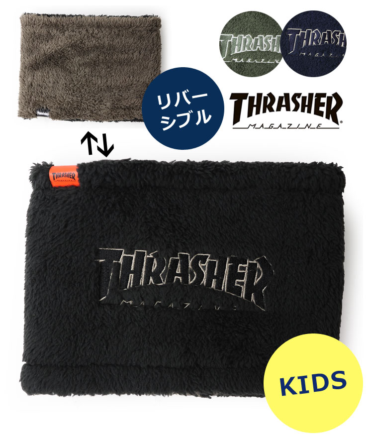 THRASHER スラッシャー キッズ OUTLINE LOGO リバーシブルネックウォーマー 21TH-K80K 子供 帽子 男の子 女の子 マフラー 秋 冬 秋冬