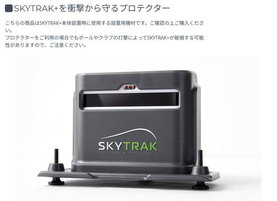 プロテクターをご利用の場合でもボールやクラブの打撃によってSKYTRAK+が破損する可能性がありますので、ご注意ください。