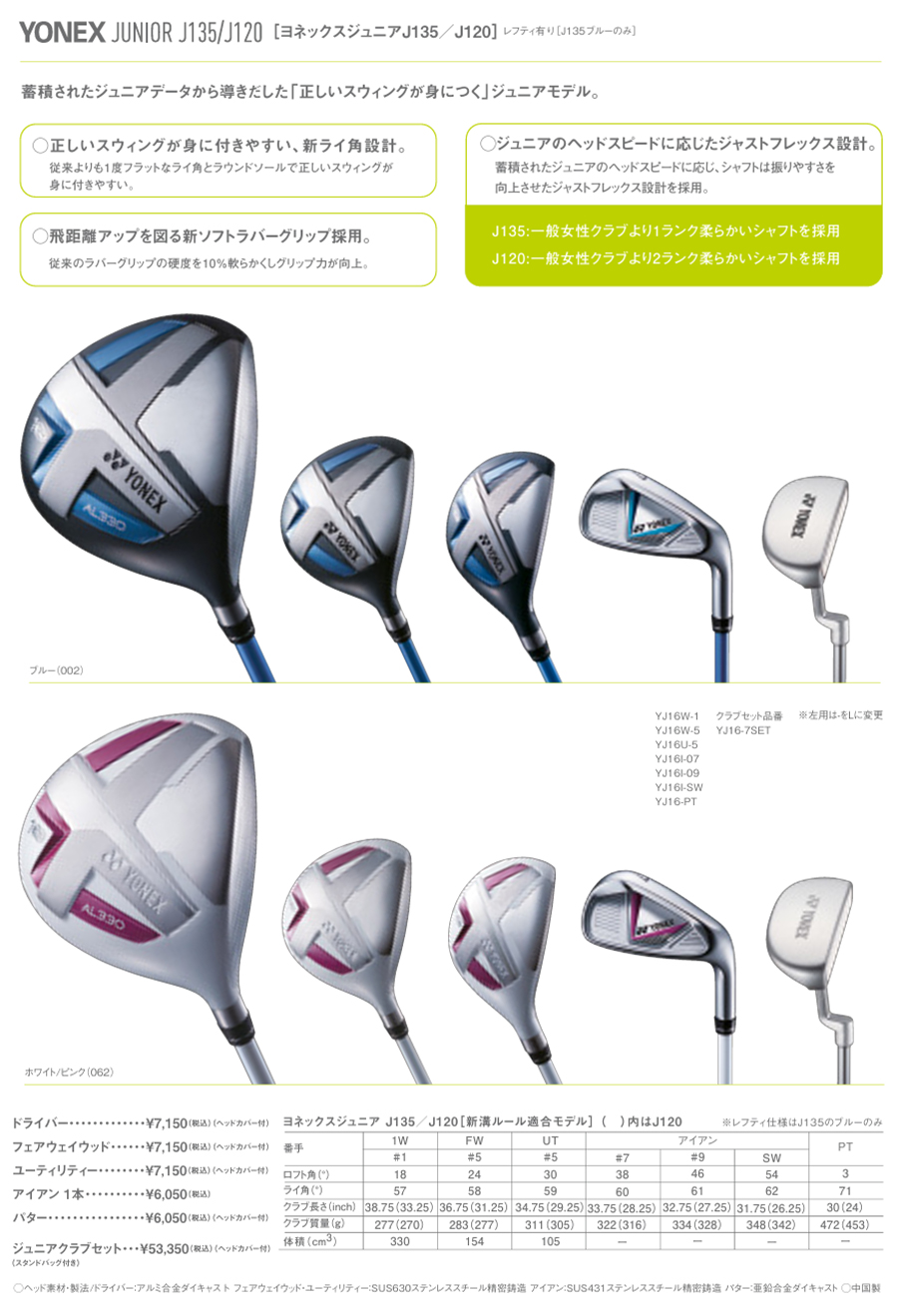 モデル:J135・高学年向け(一般女性クラブより1ランク柔らかいシャフトを採用)