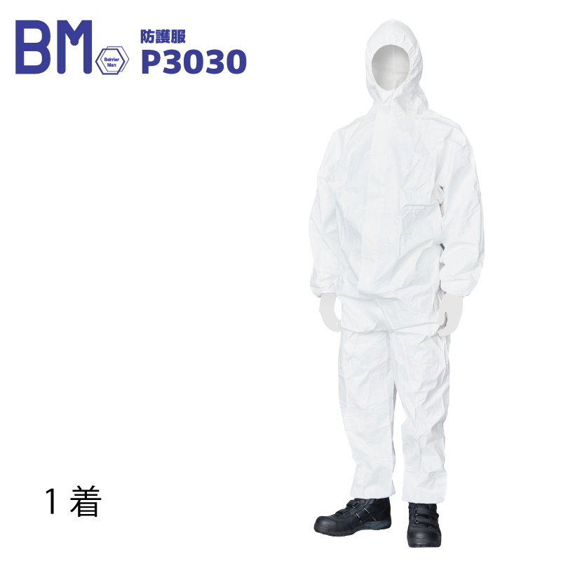防護服 1着 単品 バリアーマン P3030 SF素材 つなぎ ポケット付 使い捨て 不織布