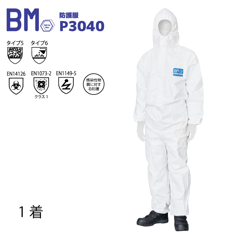 化学防護服 1着 単品 バリアーマン P3040 SF素材 つなぎ 使い捨て 不織布 JIST8115適合品