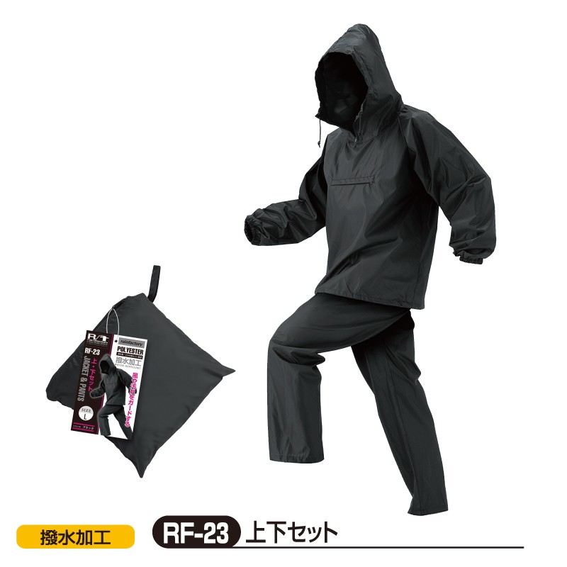 レインファクトリー RF-23 ポリヤッケ ポリパンツ上下セット おたふく手袋 撥水加工 塗装服 ブラック