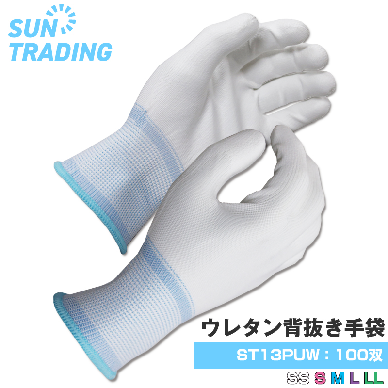 ウレタン 背抜き手袋 100双 /10×10袋 白 ウレタン手袋 PU手袋 滑り止め 作業用手袋