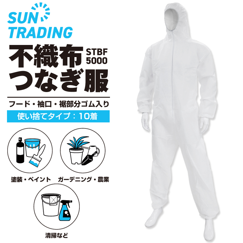 不織布 つなぎ服 10着 1着398円 使い捨て 簡易防護服 STBF5000 保護服 ポケットなし 男女兼用
