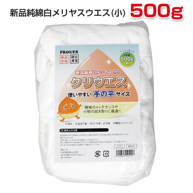 純綿白メリヤスウエス(小) 500g/袋 新品生地 縫目なし 不定形 小さいサイズ 手の平サイズ クリウエス