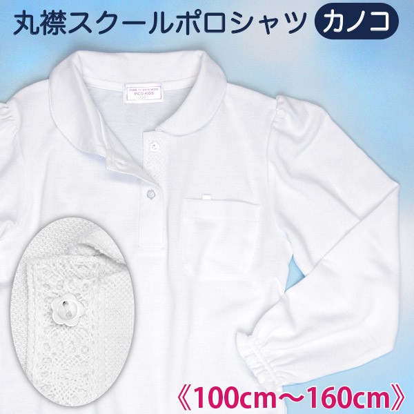 スクール ポロシャツ ニットブラウス 丸衿 長袖 スクールシャツ メール便送料無料 前立て内側にレース付き 女子 100cm 110cm 120cm 130cm 140cm 150cm 160cm