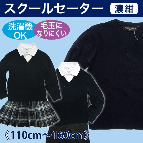 スクールセーター Vネック 紺 無地 メール便送料無料 スクールシャツ 合わせて キッズ ジュニア 男の子 女の子 110cm 120cm 130cm 140cm 150cm 160cm