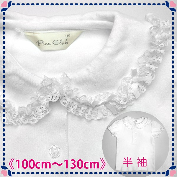 ニットブラウス ブラウス 半袖 レース付き 綿100% メール便送料無料 サテンリボンがキュート スクールシャツ キッズ 100cm 110cm 120cm 130cm