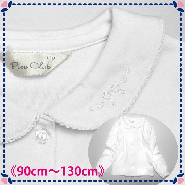 ニットブラウス ブラウス 長袖 丸襟 リボンの刺繍入り 前開きタイプ メール便送料無料 スクールシャツ 女の子 キッズ 90cm 100cm 110cm 120cm 130cm