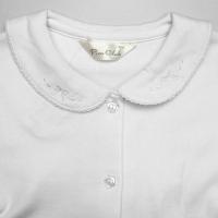 襟にはお上品でかわいい、リボンの刺繍入り。