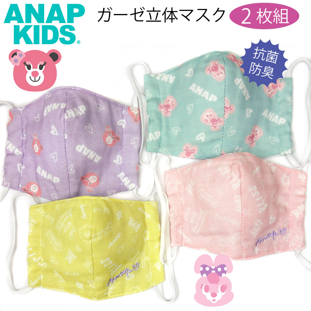 ANAP KIDS ガーゼマスク 立体 3D 子どもマスク かわいい柄入り 2枚組 ゆうパケット便選択送料180円(3個まで) 新入荷 女児 女の子