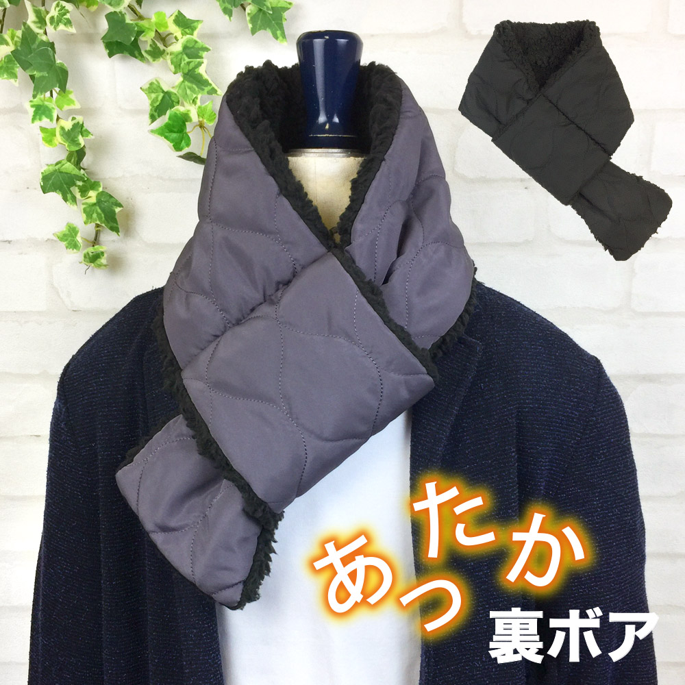 表が肌触りなめらかなフリース・内側がふわふわボアフリースのあったかネックウォーマー 。