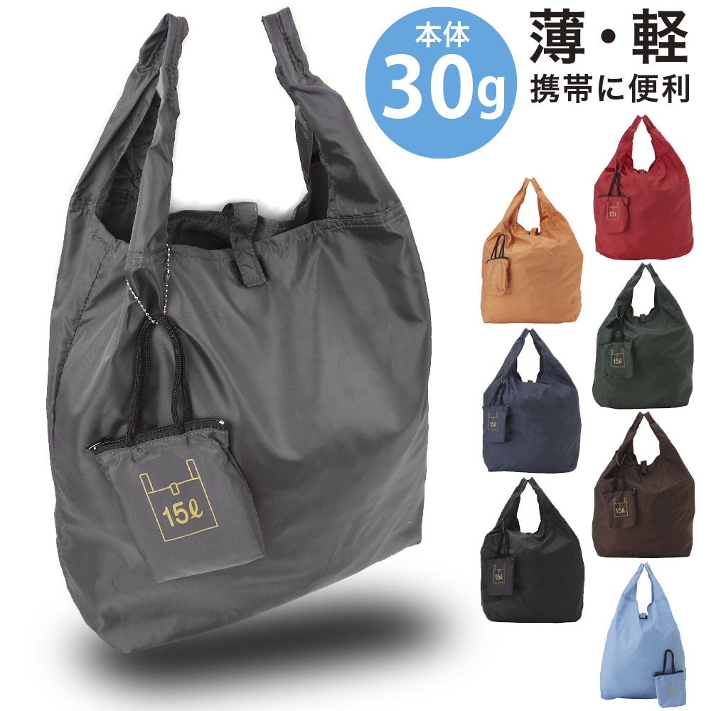 エコバッグ 折りたたみ コンパクト 軽量 15L ギフト ラッピング無料 ゆうパケット便200円(2個までOK) ミニポーチ付き 無地 手洗い可 レディース メンズ