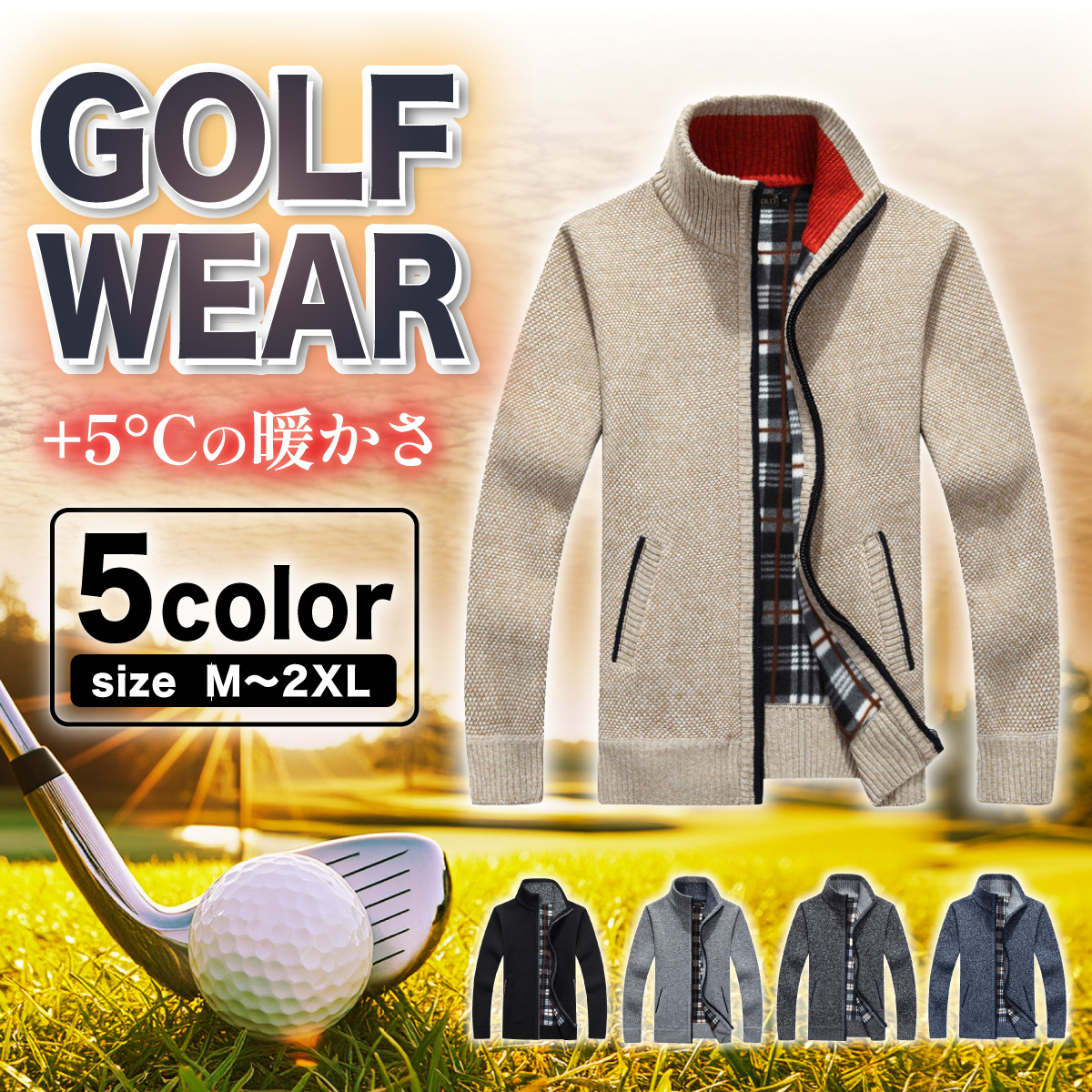 ゴルフジャケット メンズ ゴルフウエア カーディガン ニットセーター 秋冬 冬服 立ち襟 厚手 裹起毛 ボア チェック柄 ニット アウター セーター 春