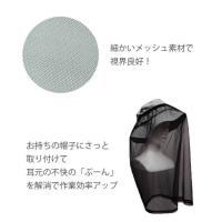 昨年のトップセラー商品です。お使いの帽子に簡単に付けられます。視界も良く、不快な虫トラブル軽減で、作業効率UP!