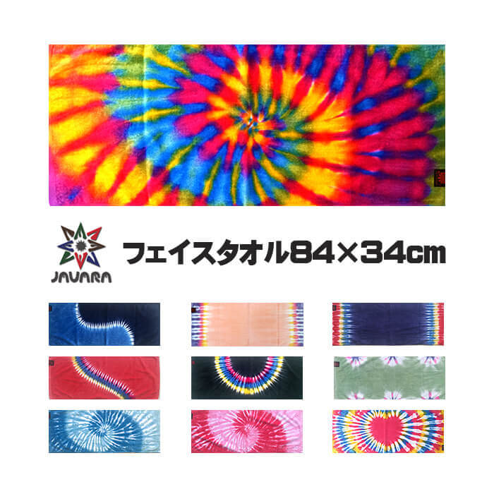 JAVARA タイダイ フェイスタオル 84×34cm タオル タイダイ ヨガ フェス スポーツタオル