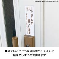 インターホンの近くや玄関扉に貼って、寝ているこどもが来訪者のチャイムで起きてしまうのを防ぎます。