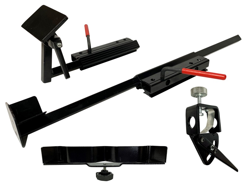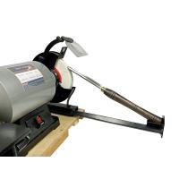 | フィンガーネイルジグではスピンドルガウジ、ボウルガウジなどをフィンガーネイルやサイドグラインド型にシャープニングする時に使います。 | スキューグランディングアタッチメントはVポケットジグに取り付けて使用し、スキューチゼルのシャープニングに使います。 | |