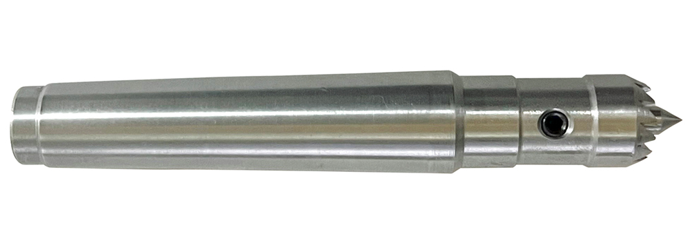 従来のクラウンドライブセンターと比べ小さいので小径材料向きになります。センターピンの内部にスプリングを入れてあり材料を押し込むと同時にピンが沈む様になっています。