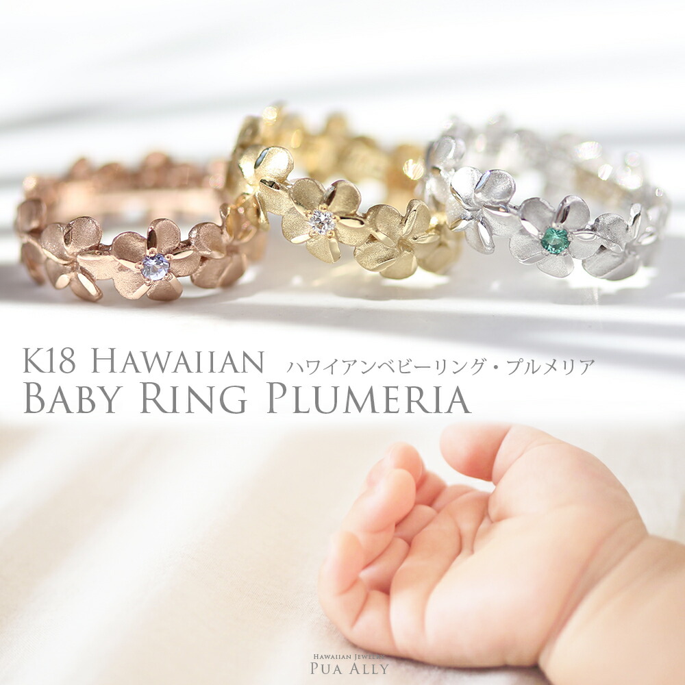 K18 ハワイアン プルメリア ベビーリング 出産祝い1歳 誕生日 プレゼントハワイアンジュエリー プアアリ 14金 名入れ 刻印 妻 夫 ママ パパ 指輪